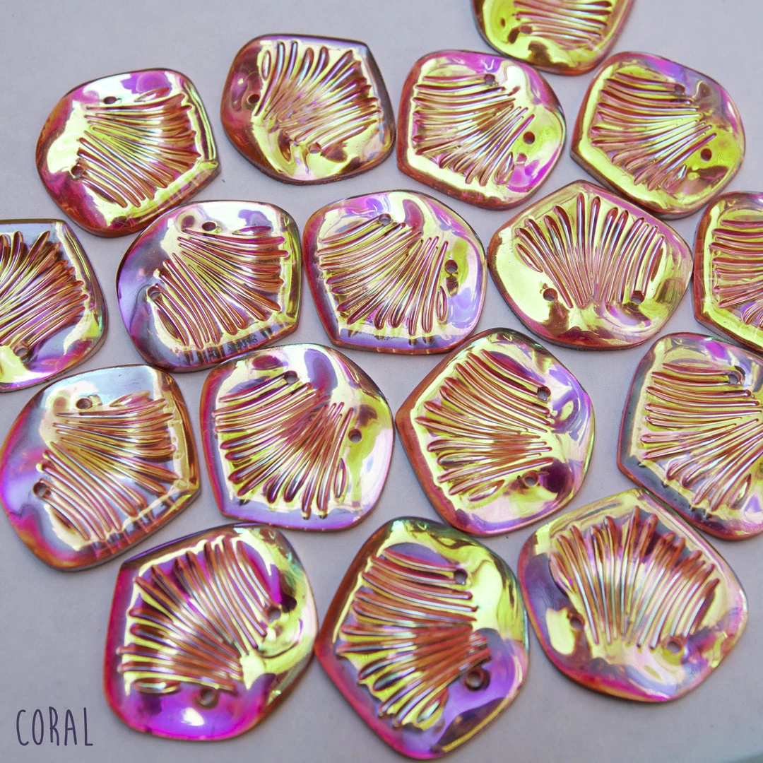 Finfolk Productions Iridescent Mythic Scales are a one-of-a-kind product! Perfect to create mermaid accessories, or even your own tail! These scales are resin with an iridescent finish, and come ready to be sewn, glued, or tied onto any project.