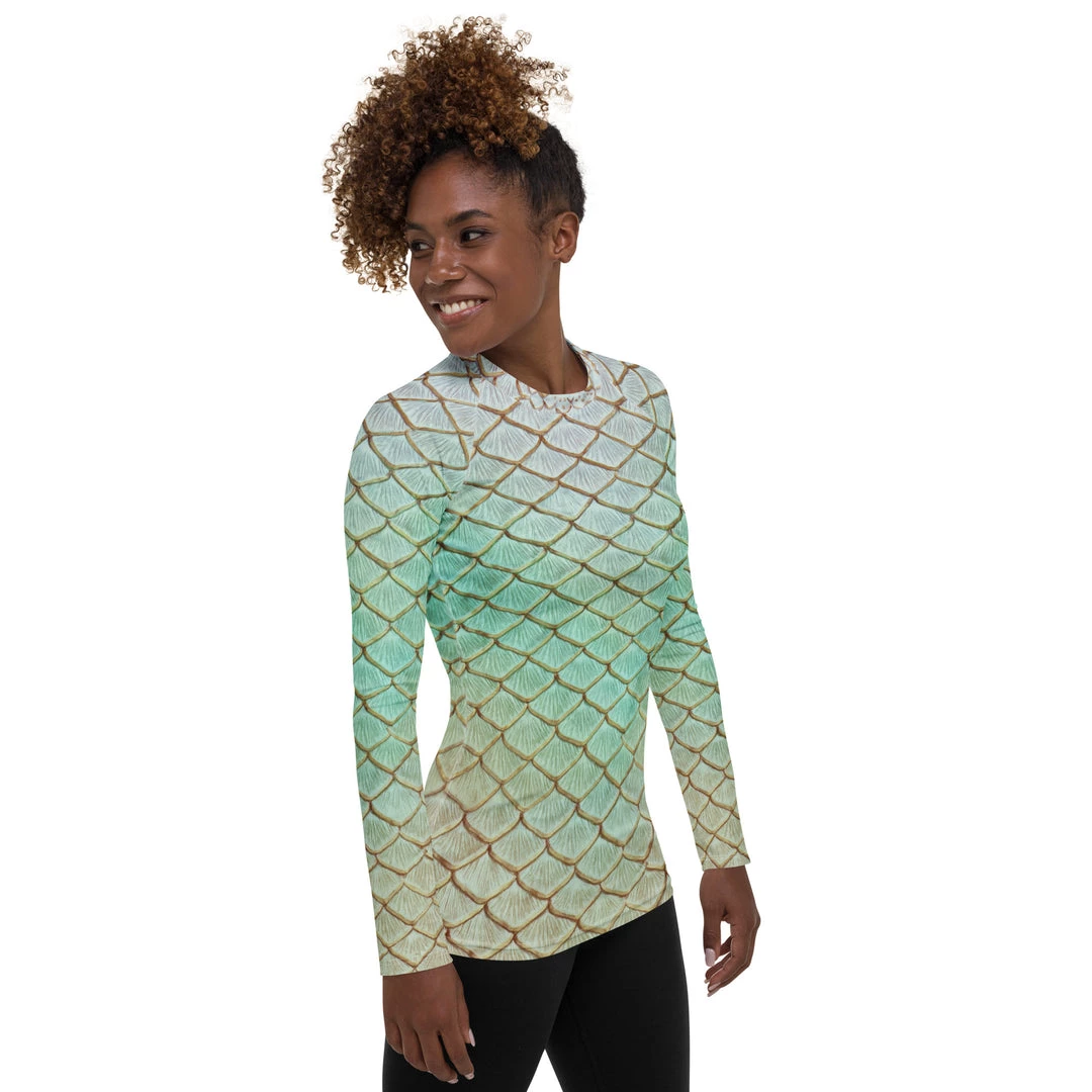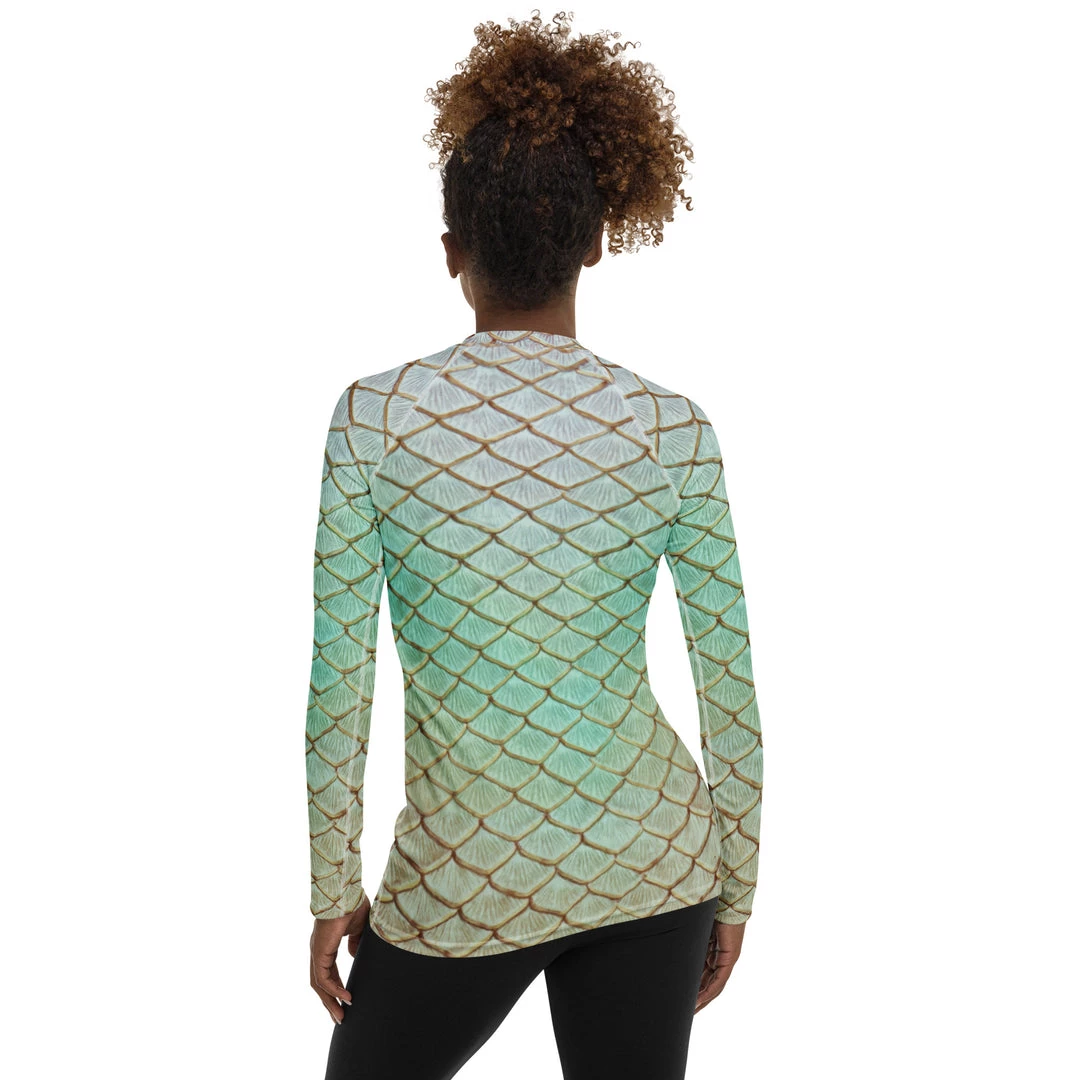 Rep your scales wherever you go with this fitted rash guard! It protects from the sun, wind, and other elements whether on land or in sea!