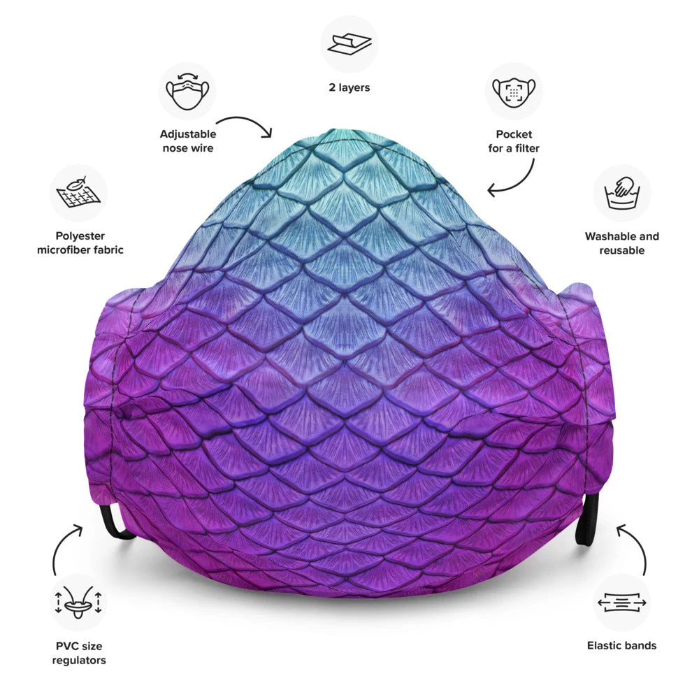 Represent your mer side with the Finfolk reusable face mask featuring an adjustable nose wire and elastic bands.