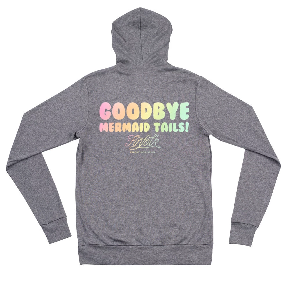 The lightweight zip hoodie the Finfolk staff have been… dreaming of. This summer, during the whirlwind of packing hundreds upon hundreds of mermaid tails, staff member Zach spoke aloud in his sleep one night, “Goodbye, mermaid tails.” And so it came to pass.