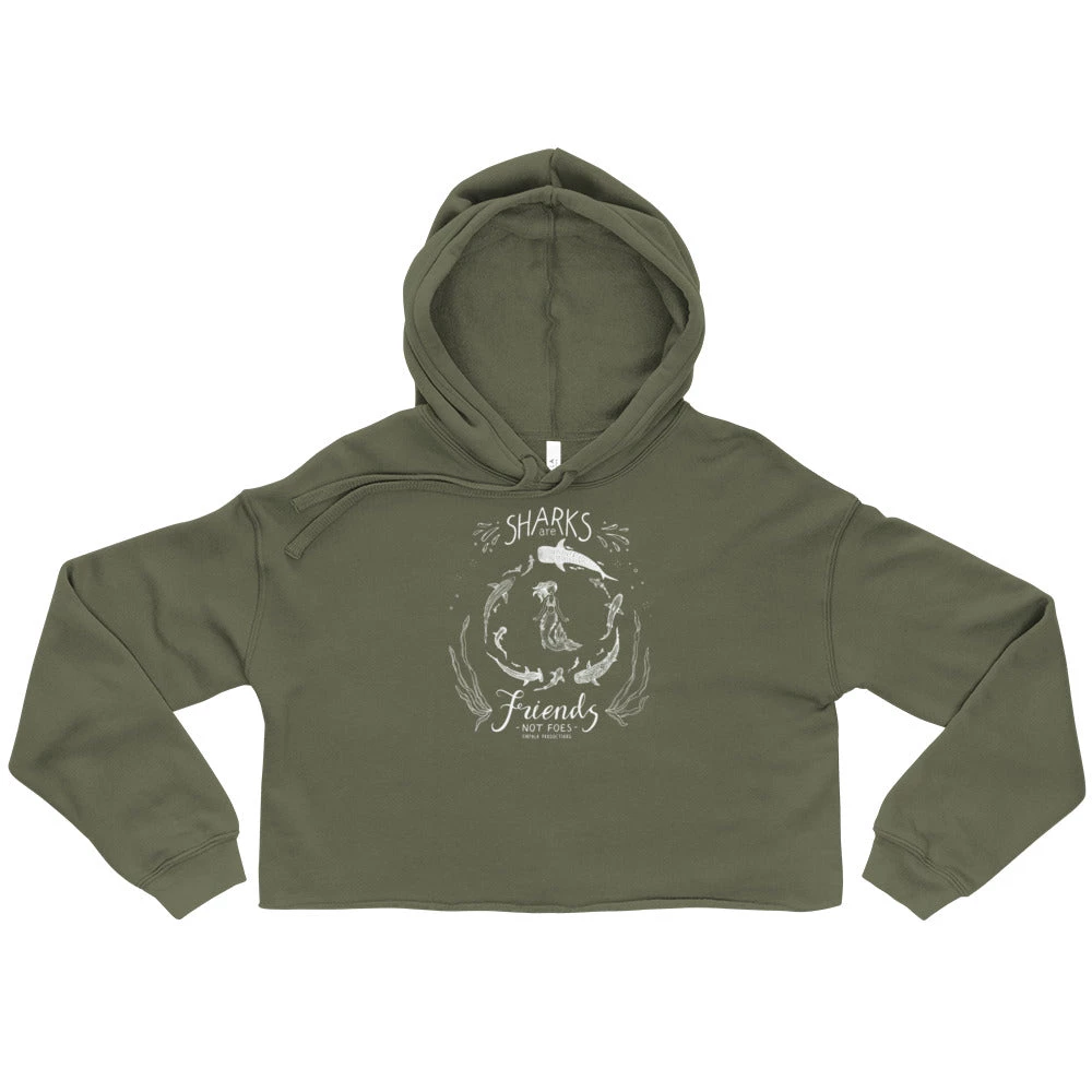This cozy crop hoodie features our Shark Friends design as seen in the 2019 Eco Box.