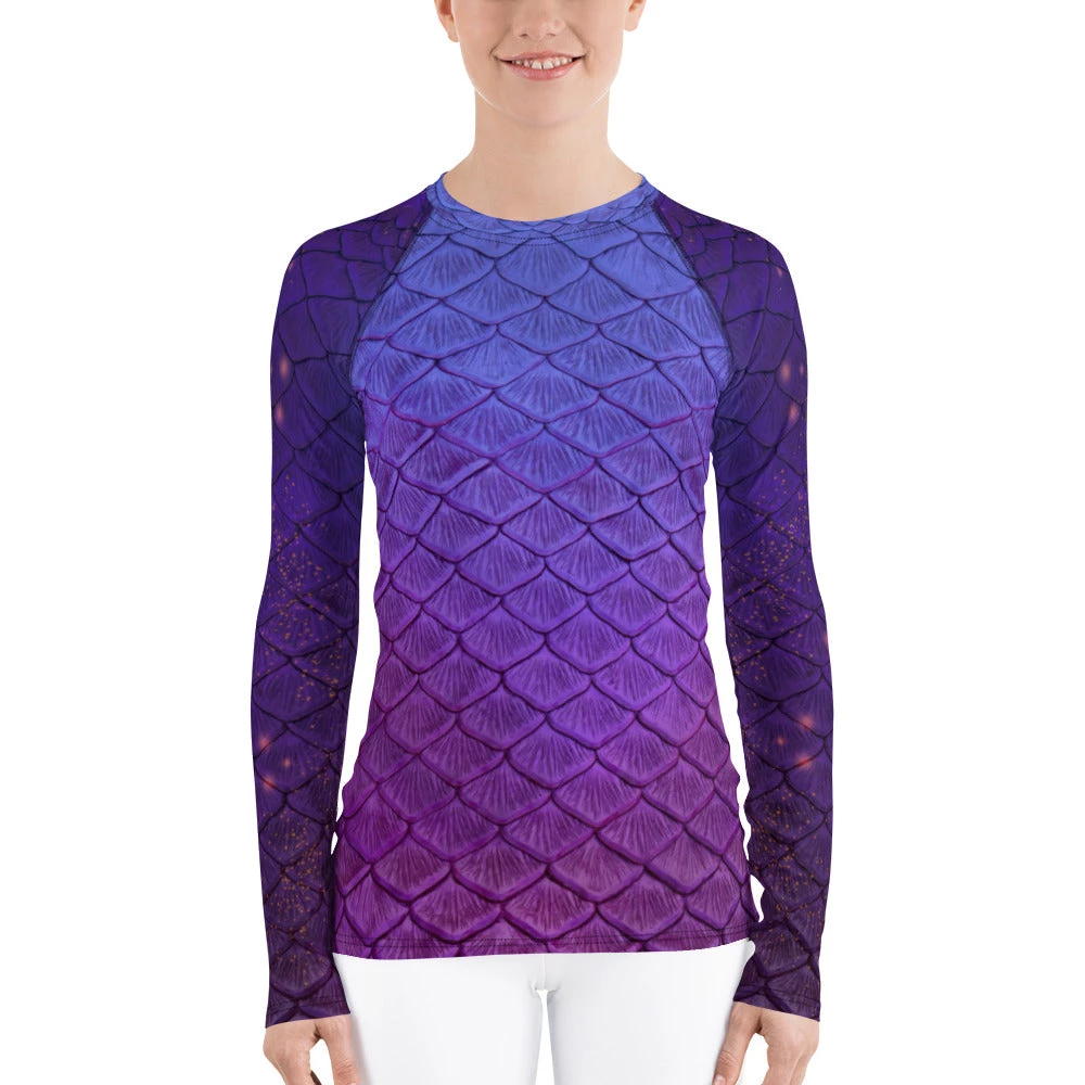 Rep your scales wherever you go with this fitted rash guard! It protects from the sun, wind, and other elements whether on land or in sea!