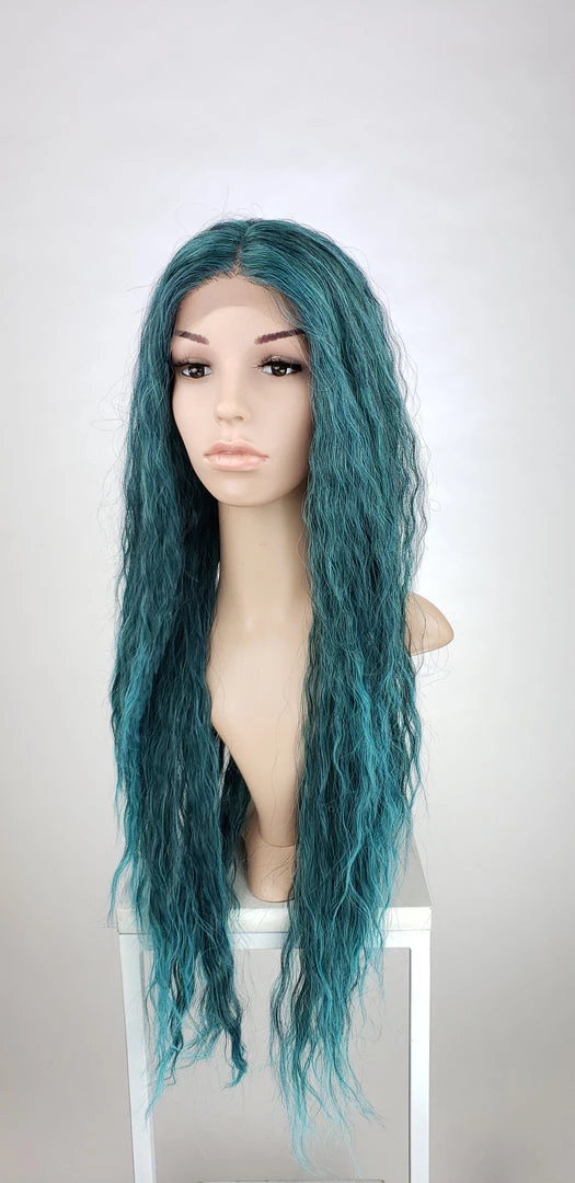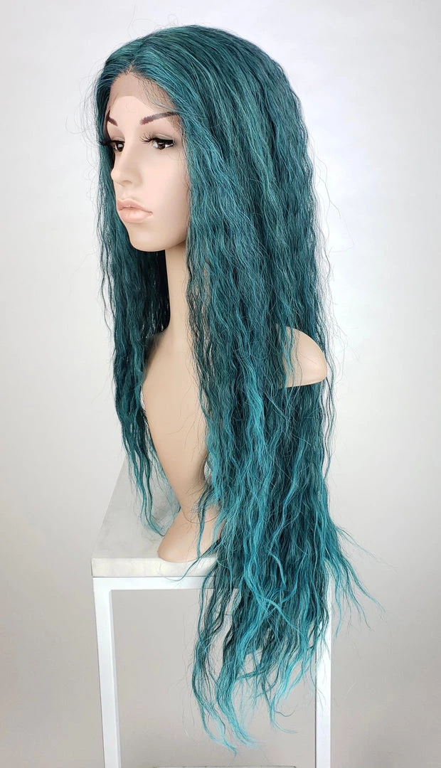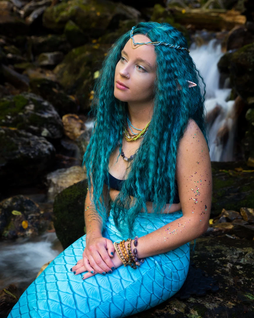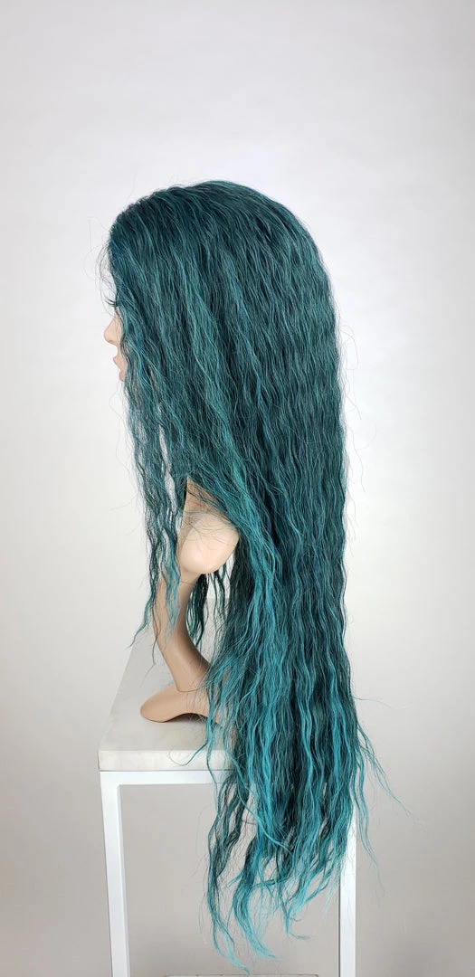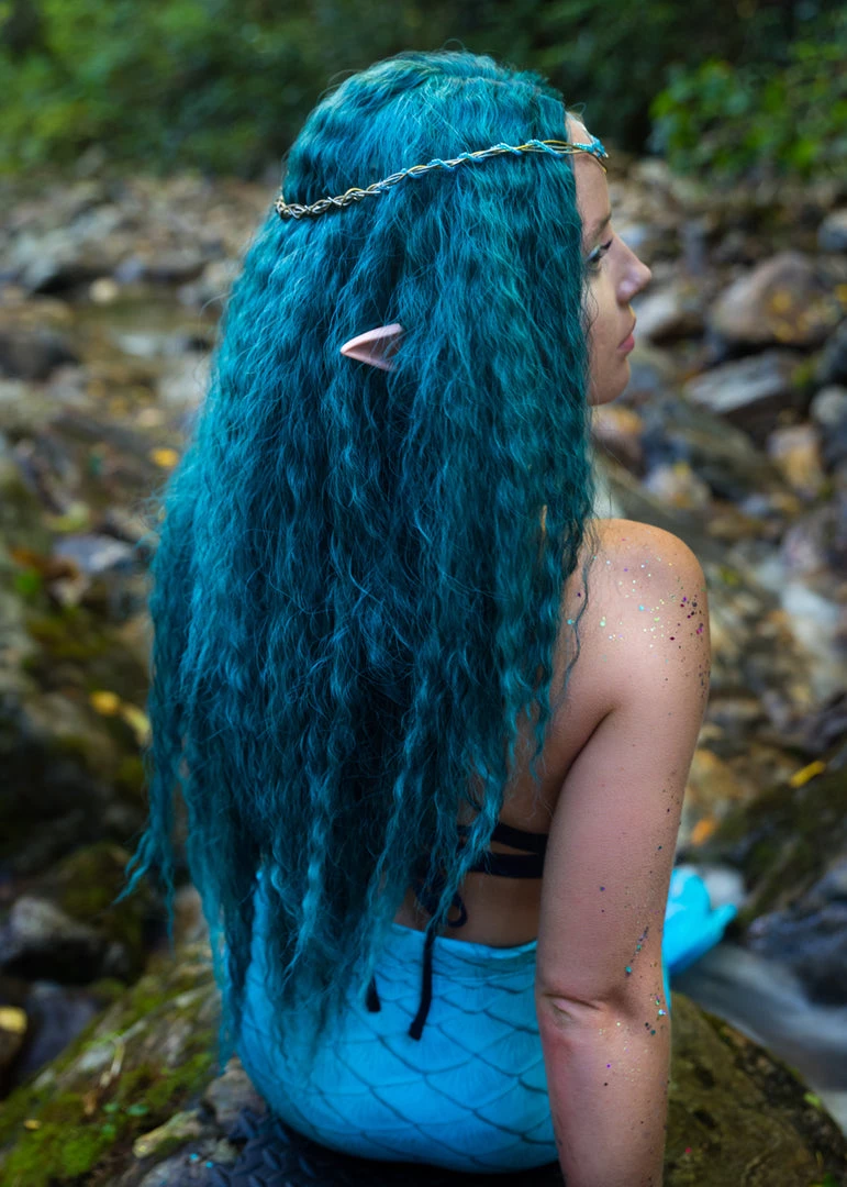 The Raven Tide Teal wig is an all time best selling Pose mermaid mane! Featuring salt-kissed beach waves, this wig is just wild enough to match the heart of any mermaid or merman! Plus, the complementary tones of the Jewel of Jupiter tail make all the blues shine even brighter! Take this wig for a swim or complete your photoshoot look! The possibilities are endless… what are you waiting for?