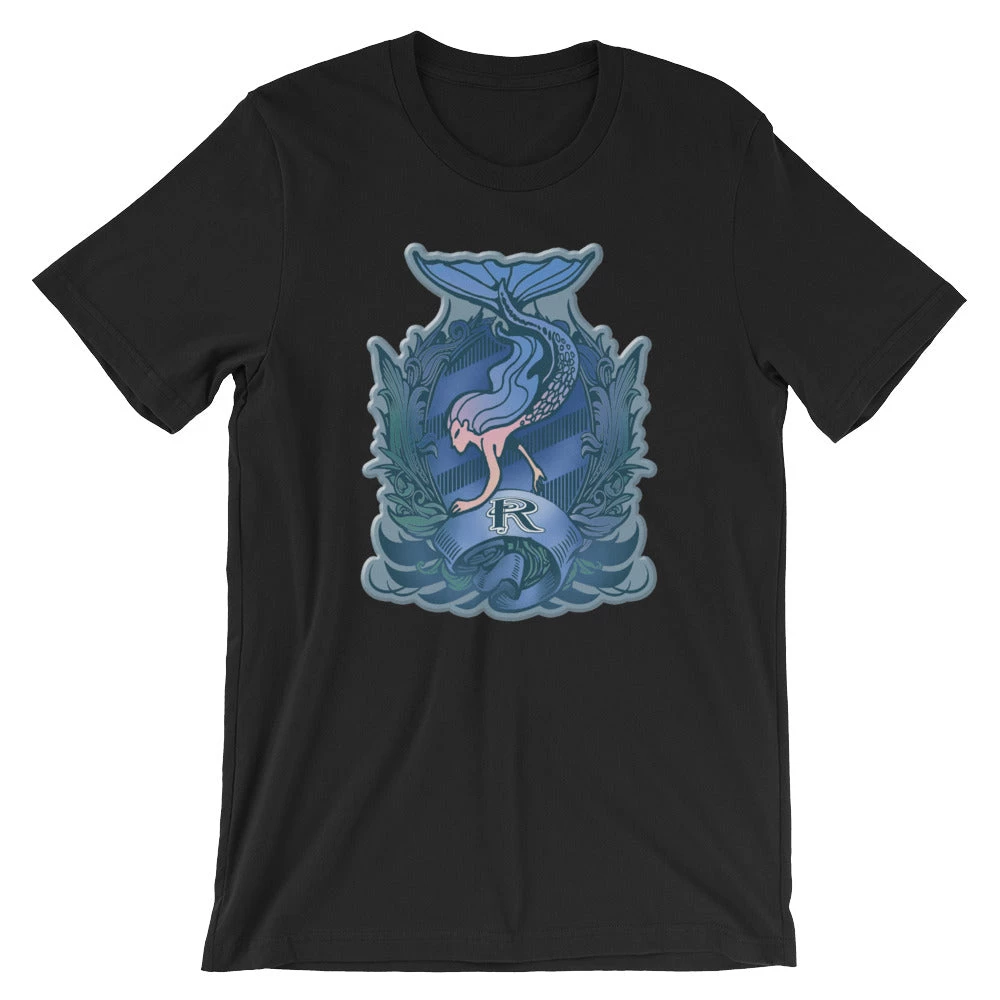 This sapphire Finfolk crest was designed by Finfolk’s own in house watercolor artist, Scotty Roberts. Colorful and vibrant, this crest is inspired by Finfolk’s favorite wizarding world.