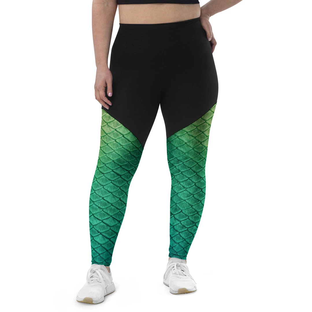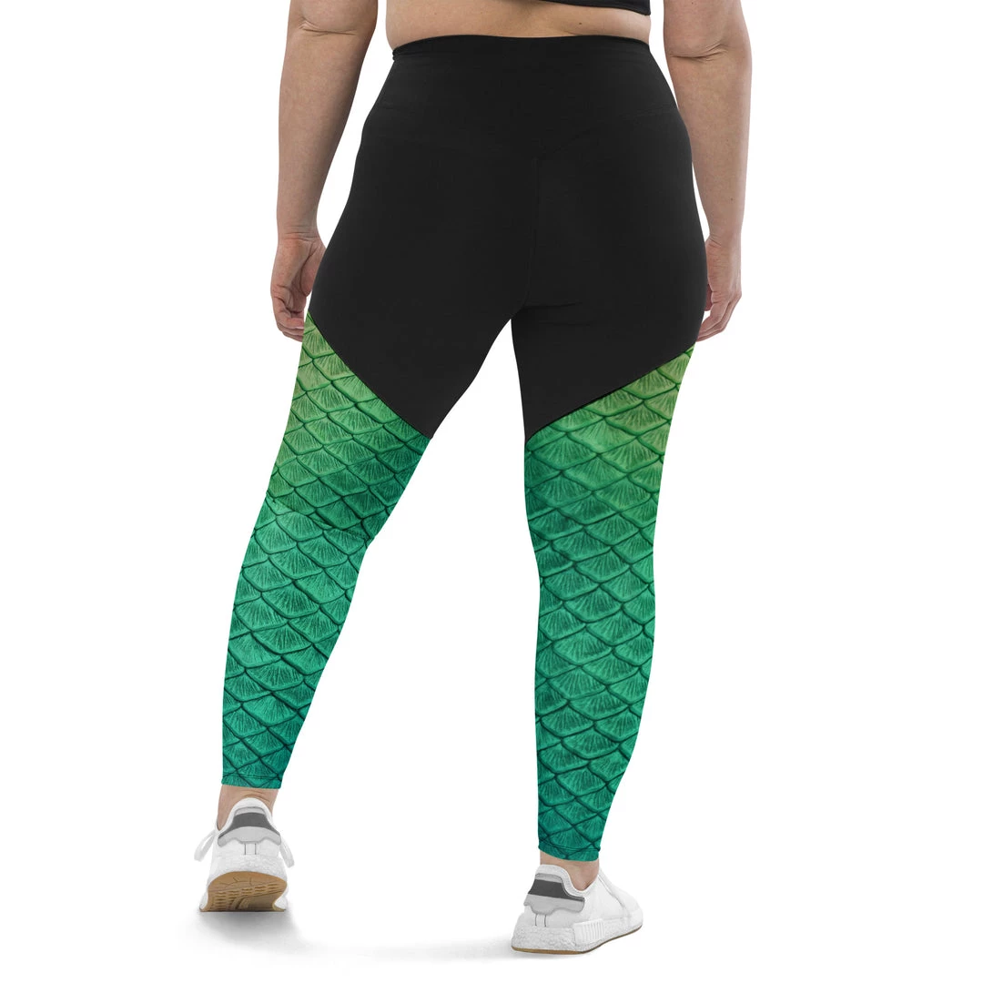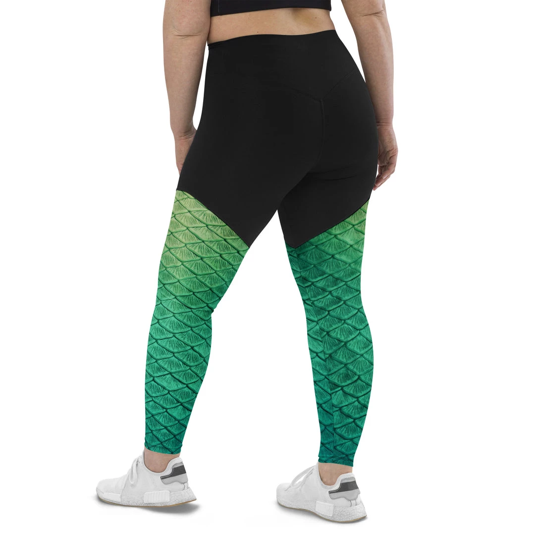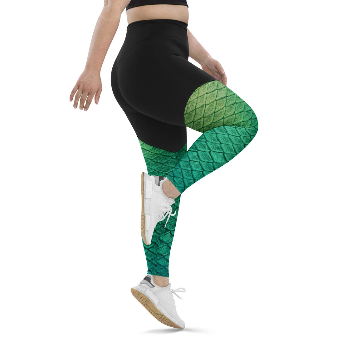 Enjoy your favorite Finfolk scale print leggings with a pocket! These compression leggings are perfect for medium to high intensity workouts whether on land or sea.