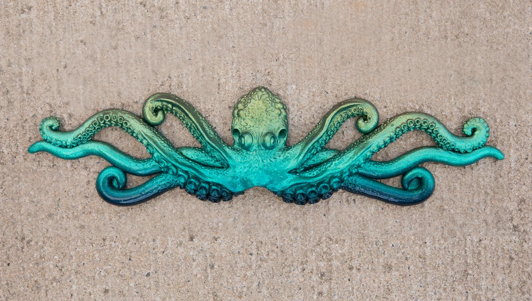 The octopus itself measures approximately 12 inches long by 3 inches wide. Circlets are sent with ribbon ties already attached for immediate wear. Ribbon and beads may vary.